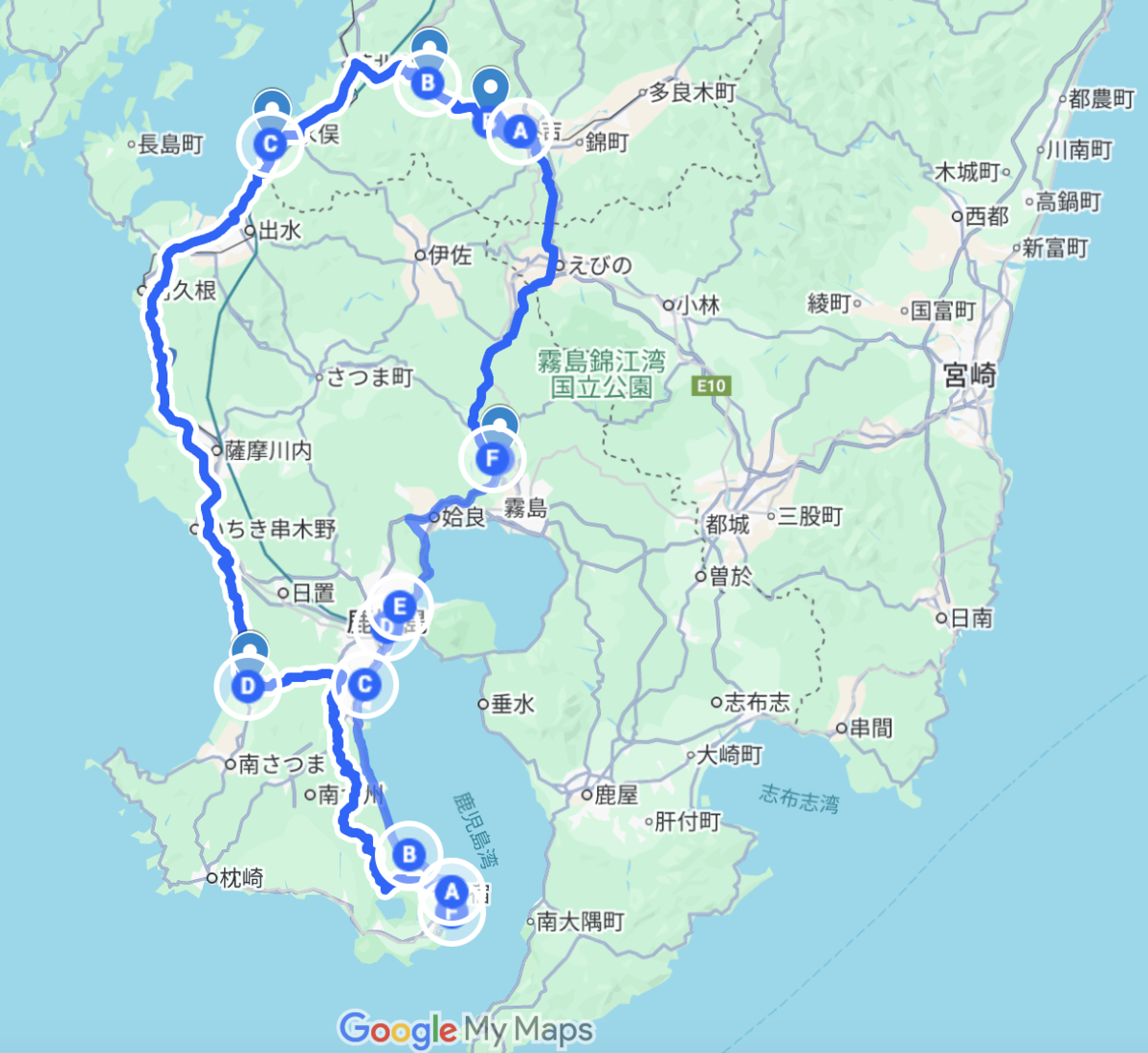 今回の旅のルート。レンタカーは2泊3日で1.2万円でガソリン代は約4,000円でした。